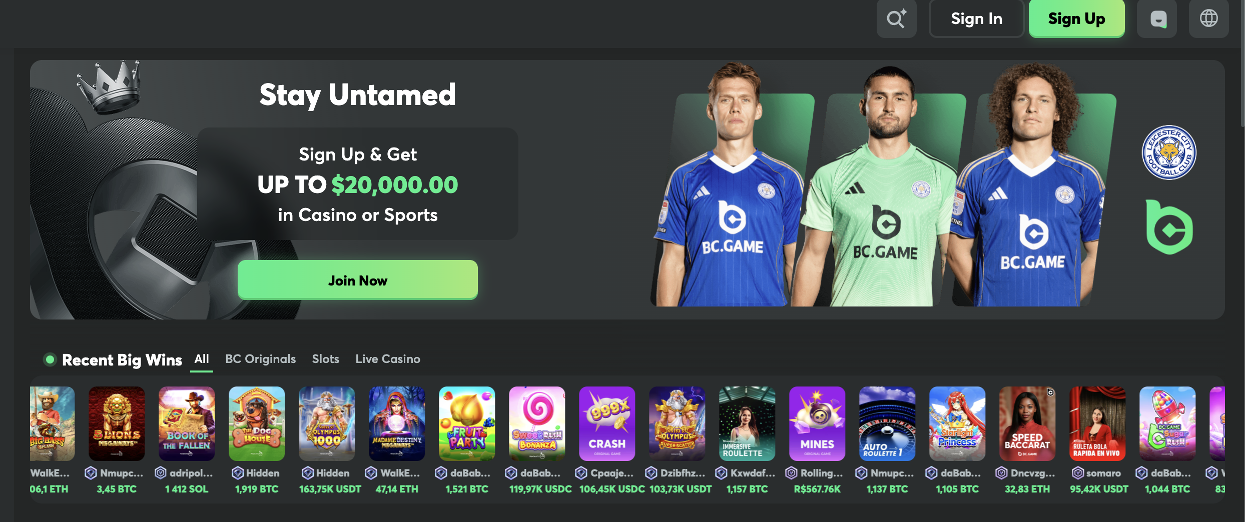 Open the official BC.GAME site and make sure you are on the correct platform. - Click “Sign Up” in the top right corner