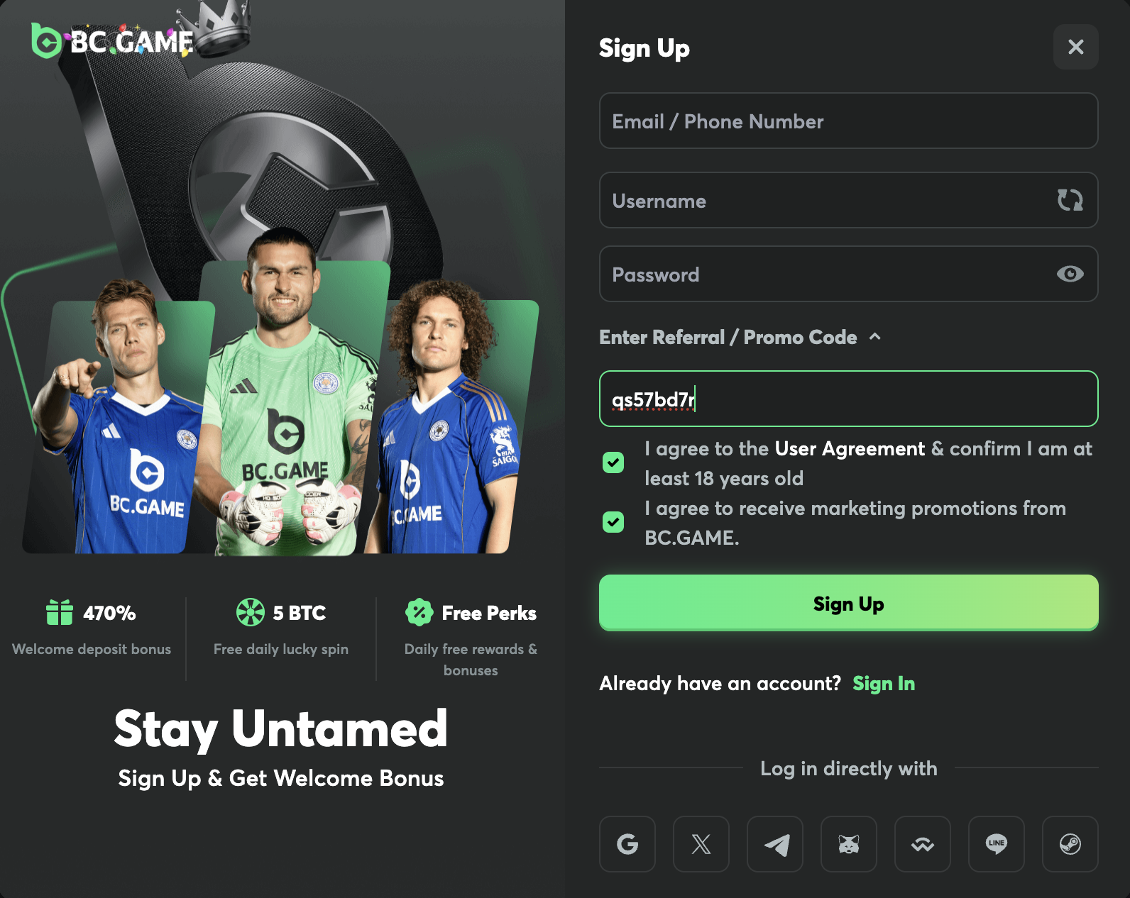 Many players choose to register with a BC.GAME promo code, especially when there’s a campaign that adds extra value on top of the standard welcome offer. A promo code is usually entered during sign-up (or, depending on the promotion, in the relevant account section). If the offer is active and the conditions are met, the reward is applied automatically.